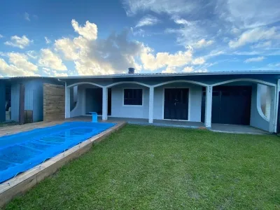 Casa de alvenaria com 130m² de área construída, composta por 3 dormitórios (sendo 1 suíte), sala de estar, cozinha, 1 banheiro social, área de serviço, churrasqueira, semi mobiliada, garagem, lavanderia, cercado.